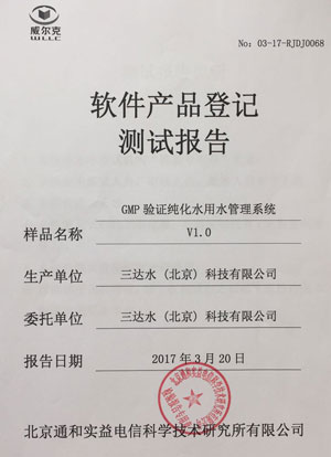| 三達(dá)水發(fā)布GMP驗(yàn)證純化水用水管理系統(tǒng)V1.0軟件測(cè)試報(bào)告