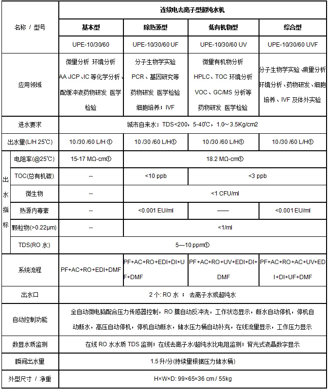 PF:預(yù)過濾 AC:活性炭RO:反滲透 DI:離子交換UV:雙波長紫外殺菌/消解(254、185nm) UF:超濾 DMF:雙層膜過濾
