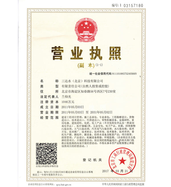 網(wǎng)站首頁 >> 關(guān)于三達純水 >> 三達資質(zhì)證書